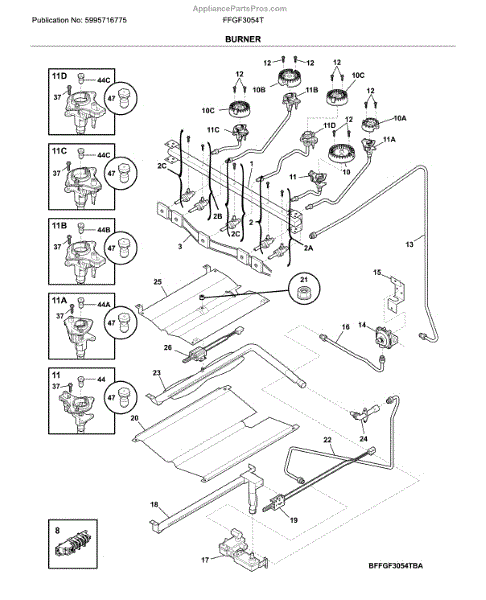The Valve is an OEM replacement part for Frigidaire ranges. Located along the gas line leading to the oven burners, it regulates gas flow and controls burner ignitions. Proper valve function is critical for safe and efficient cooking performance.