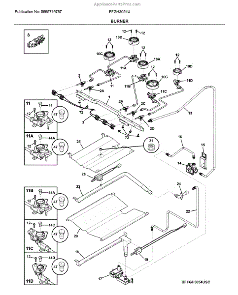 The Gas Burner is an OEM replacement part for Frigidaire gas wall ovens and cooktops. It facilitates safe and efficient cooking by providing a controlled source of flame.