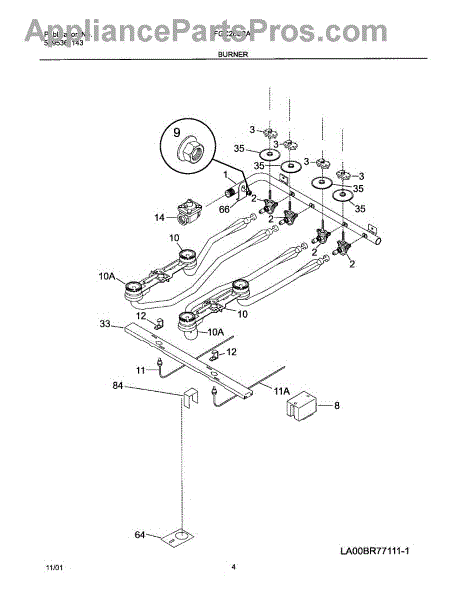 Parts for Frigidaire FGC26C3AWA: 05 - Burner Parts