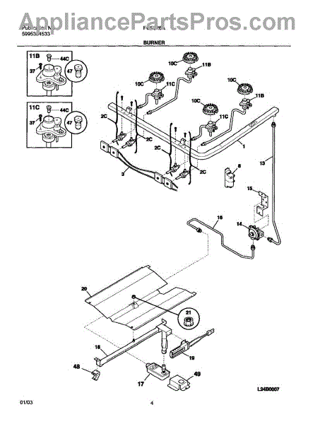 Parts for Frigidaire FGF326AWD: 05 - Burner Parts