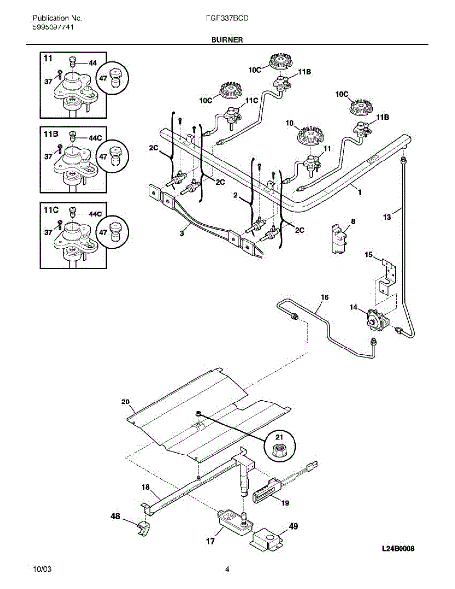 Parts for Frigidaire FGF337BCD: 05 - Burner Parts