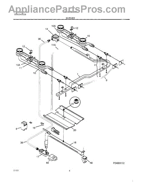 Parts for Frigidaire FGF345BHWB: 05 - Burner Parts