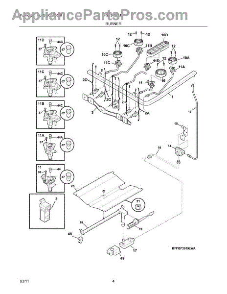 The Igniter Orifice Assembly is an OEM component for Frigidaire gas ranges. It is an integrated assembly housing both the electric ignition wire and adjustable gas orifice or restrictor needed for controlled gas flow. Symptoms of a bad ignitor orifice assembly include: