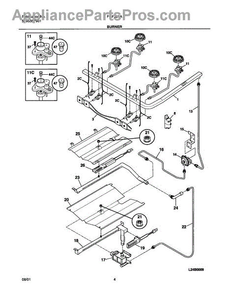 Parts for Frigidaire FGF355AWA: 05 - Burner Parts