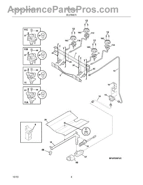Parts for Frigidaire FGFS36FUD: 05 - Burner Parts