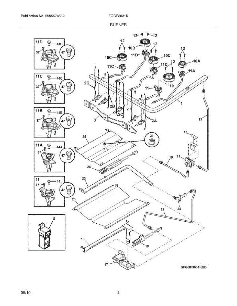 Burner orifice controls gas and air flow to cooktop burners. Replace if cracked, corroded, or when converting between natural gas and propane fuel types.