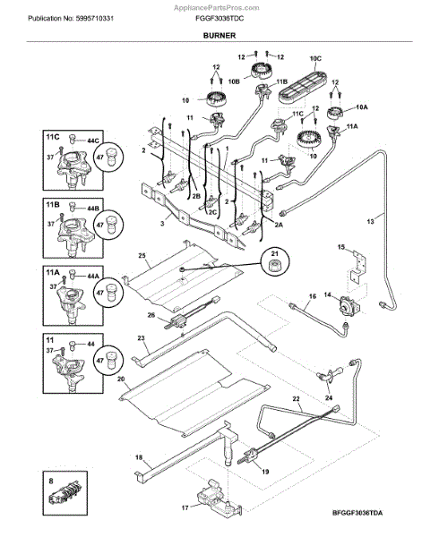 The Burner Orifice is an OEM replacement part for Frigidaire gas ranges and cooktops. It controls the mixture of gas and air delivered to each burner element.