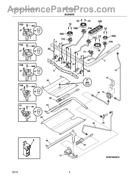 The Igniter Orifice Assembly is an OEM component for Frigidaire gas ranges. It is an integrated assembly housing both the electric ignition wire and adjustable gas orifice or restrictor needed for controlled gas flow. Symptoms of a bad ignitor orifice assembly include: