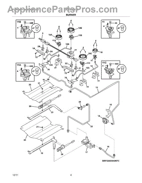 Parts for Frigidaire FGGS3045KFE: 05 - Burner Parts