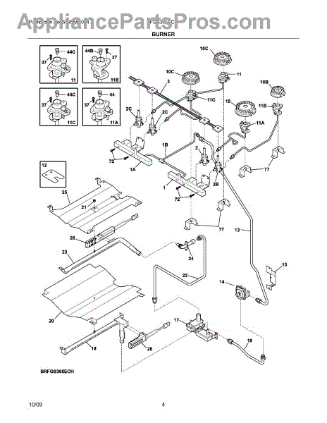 Parts for Frigidaire FGS365ECJ: 05 - Burner Parts