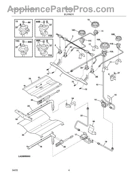 Parts for Frigidaire FGS379EQA: 05 - Burner Parts