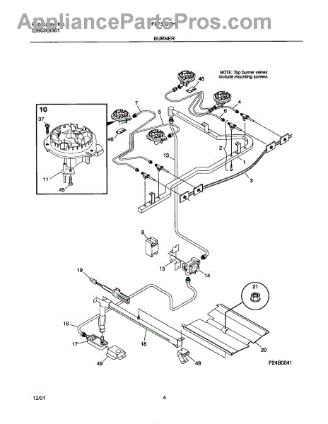 The Top Igniter Electrode is an OEM replacement part for Frigidaire gas ranges. This part provides the spark to ignite the surface burners. Causes involve repetitive heat stresses and deterioration of internal wiring over extended use. Corrosion from possible gas or moisture intrusion may also degrade electrode performance. Symptoms of a faulty top igniter electrode include: