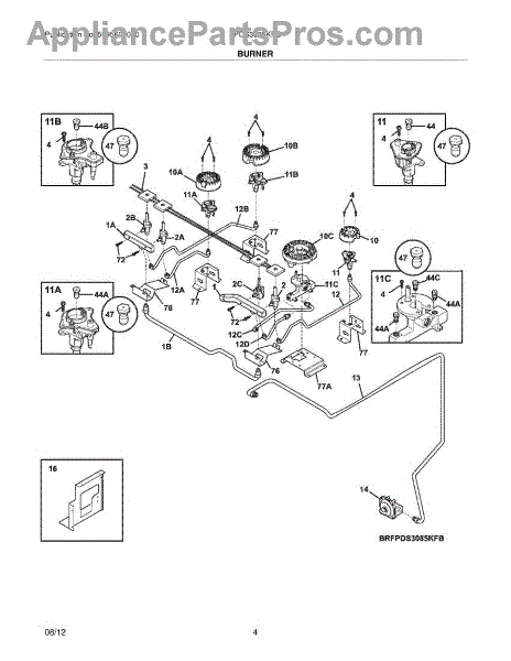 Parts for Frigidaire FPDS3085KFG: 05 - Burner Parts