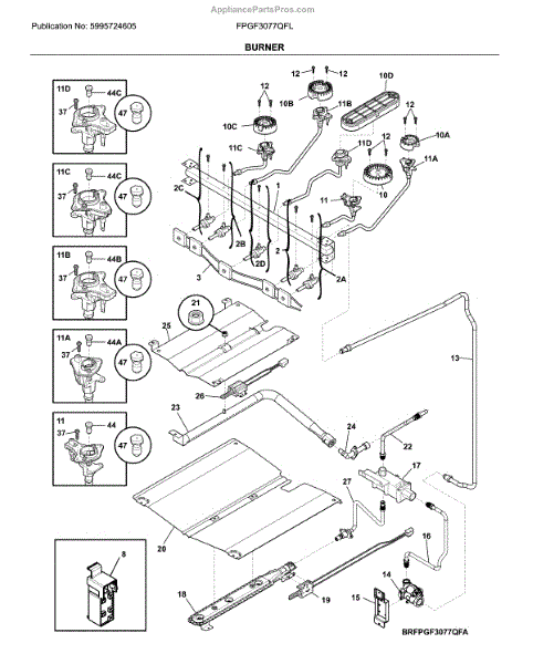 The Igniter Orifice Assembly is an OEM component for Frigidaire gas ranges. It is an integrated assembly housing both the electric ignition wire and adjustable gas orifice or restrictor needed for controlled gas flow. Symptoms of a bad ignitor orifice assembly include: