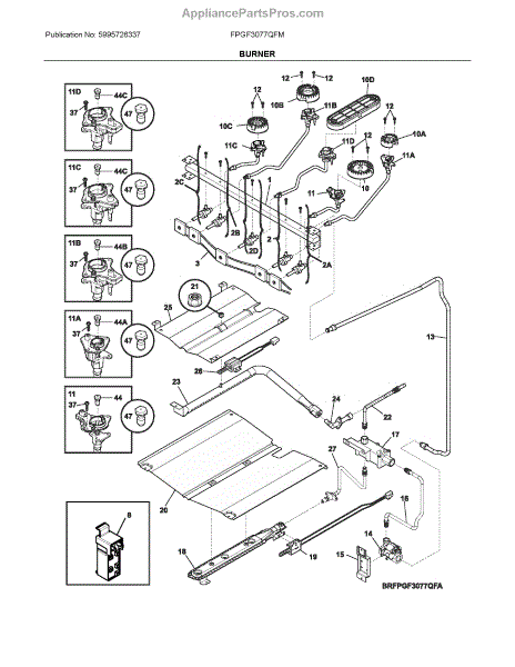 The Igniter Orifice Assembly is an OEM component for Frigidaire gas ranges. It is an integrated assembly housing both the electric ignition wire and adjustable gas orifice or restrictor needed for controlled gas flow. Symptoms of a bad ignitor orifice assembly include:
