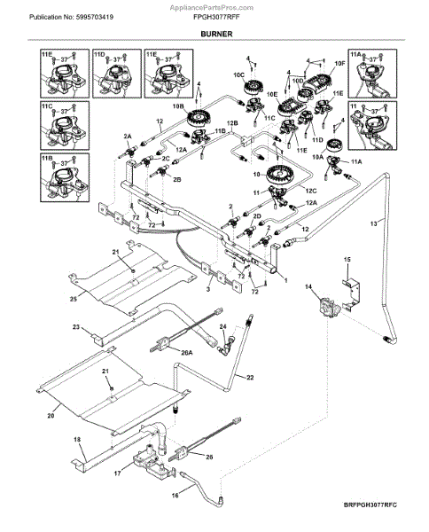 The Ignitor is an OEM replacement part for Frigidaire gas ranges. Located near the burner heads, this component is responsible for generating the electric spark required to light stove top burners. Symptoms of a faulty ignitor include:
