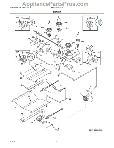The Ignitor is an OEM replacement part for Frigidaire gas ranges. Located near the burner heads, this component is responsible for generating the electric spark required to light stove top burners. Symptoms of a faulty ignitor include: