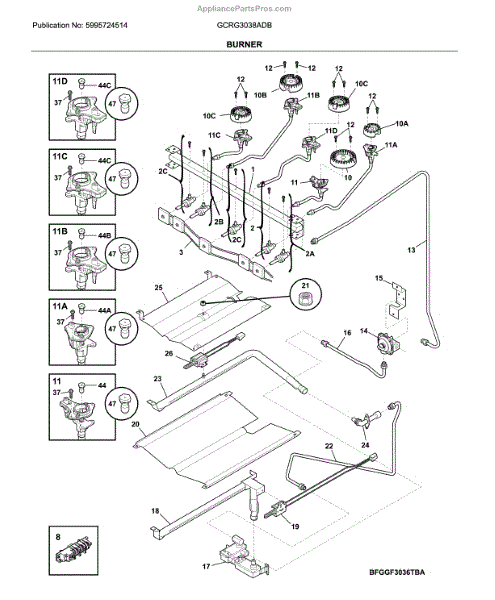 Parts for Frigidaire GCRG3038ADB: Burner Parts