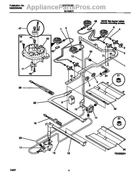 Parts for Frigidaire GGF355BFWA: 03 - Burner Parts