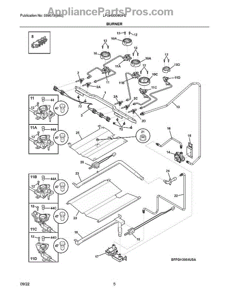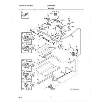 The Gas Burner is an OEM replacement part for Frigidaire gas wall ovens and cooktops. It facilitates safe and efficient cooking by providing a controlled source of flame.