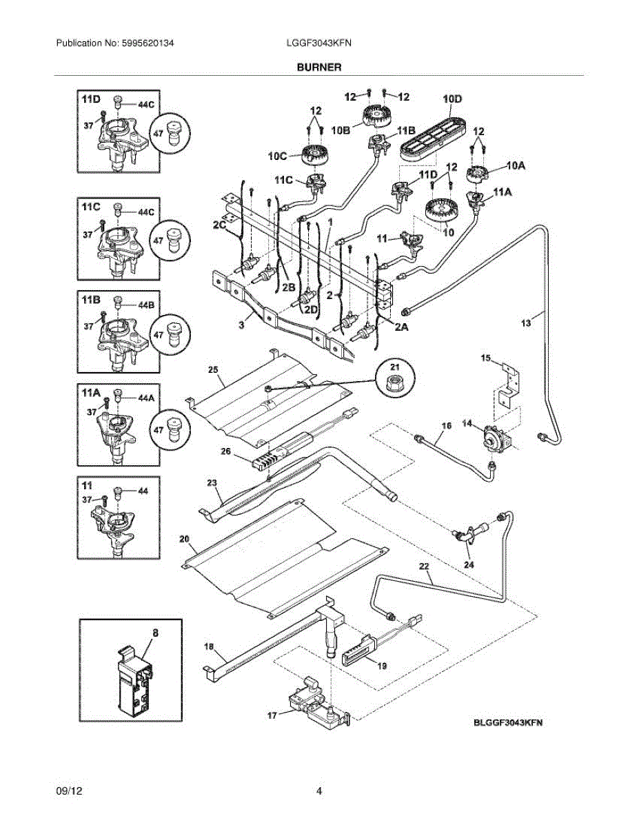The LP Conversion Kit is an OEM part for Frigidaire gas ranges. This kit allows for the conversion of the range's fuel type from natural gas to LP (liquefied petroleum) gas. It ensures the safe and efficient operation of the gas range when using LP gas as the fuel source.