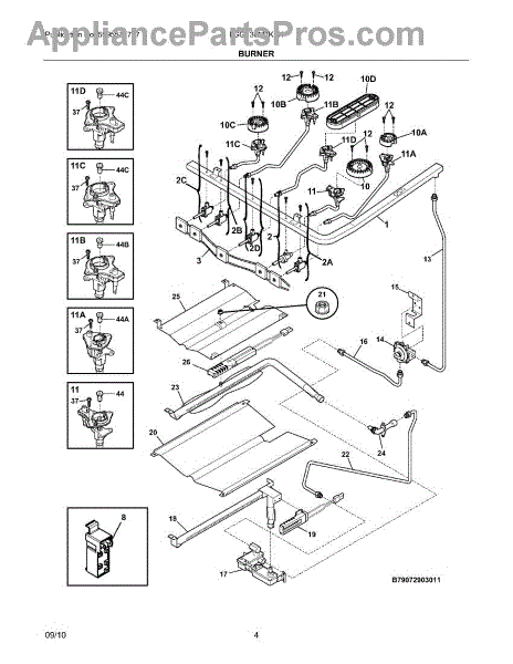 The Igniter Orifice Assembly is an OEM component for Frigidaire gas ranges. It is an integrated assembly housing both the electric ignition wire and adjustable gas orifice or restrictor needed for controlled gas flow. Symptoms of a bad ignitor orifice assembly include: