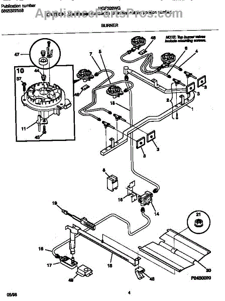 Parts for Frigidaire MGF326WGSD: 03 - Burner Parts