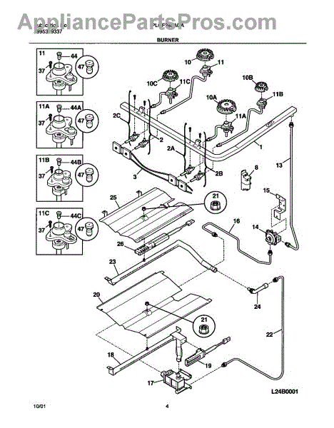 Parts for Frigidaire PLGF389ACA: 05 - Burner Parts