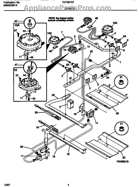Parts for Frigidaire TGF367CFSA: 03 - Burner Parts