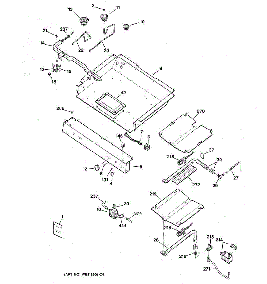 Broil shield for gas ranges. Mounts inside the oven cavity to protect components from direct heat. Replace if cracked, warped, or damaged.
