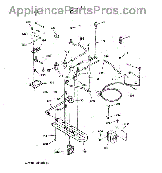 This gas valve assembly controls the flow of gas to the appliance's burners so they ignite and maintain a steady flame. Replace a failing valve to address ignition problems and restore normal heat delivery. What it does: