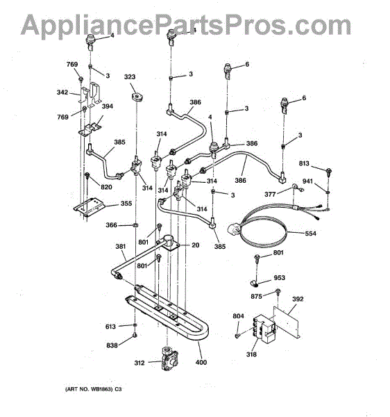 This gas valve assembly controls the flow of gas to the appliance's burners so they ignite and maintain a steady flame. Replace a failing valve to address ignition problems and restore normal heat delivery. What it does: