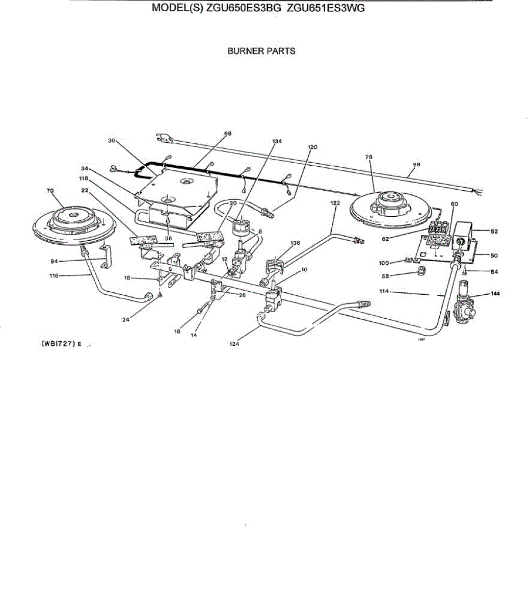 Parts for Ge ZGU651ES3WG: 02 - Burner Parts