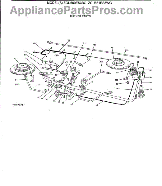 Parts for Ge ZGU660ES3BG: 02 - Burner Parts