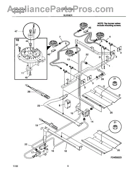 Made by Frigidaire. This is a dual oven valve for bake and broil.