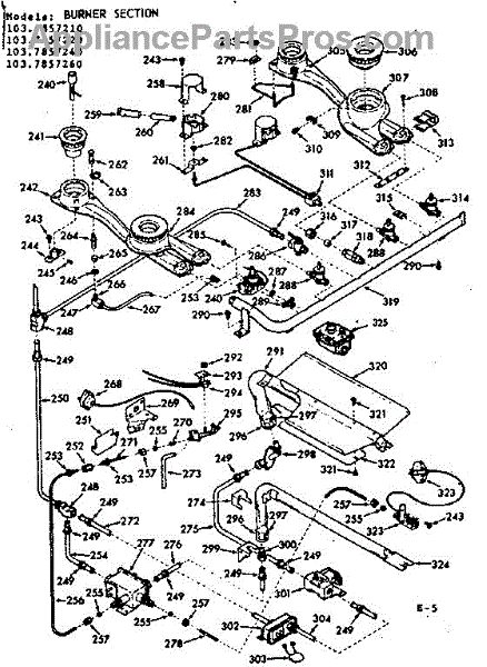 Parts for Kenmore 103.7857240 (1037857240, 103 7857240): Burner Parts