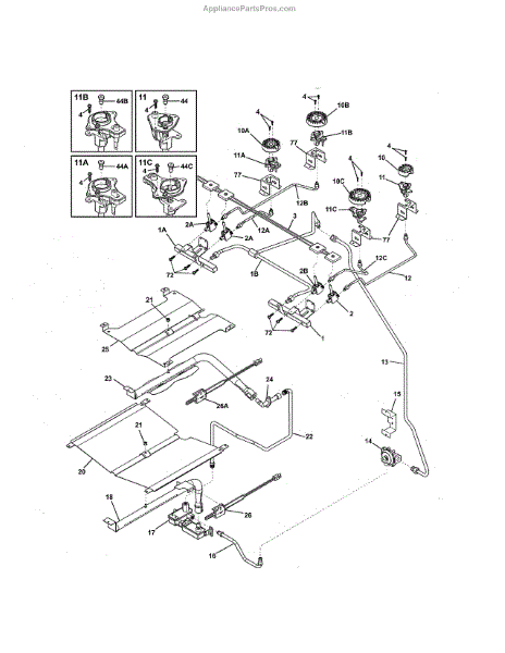 The Ignitor is an OEM replacement part for Frigidaire gas ranges. Located near the burner heads, this component is responsible for generating the electric spark required to light stove top burners. Symptoms of a faulty ignitor include: