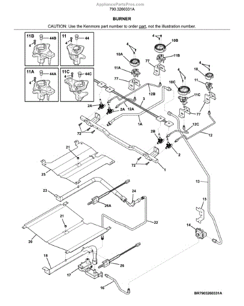 Burner orifice controls gas and air flow to cooktop burners. Replace if cracked, corroded, or when converting between natural gas and propane fuel types.
