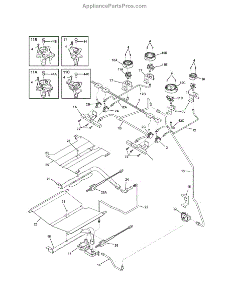 The Ignitor is an OEM replacement part for Frigidaire gas ranges. Located near the burner heads, this component is responsible for generating the electric spark required to light stove top burners. Symptoms of a faulty ignitor include: