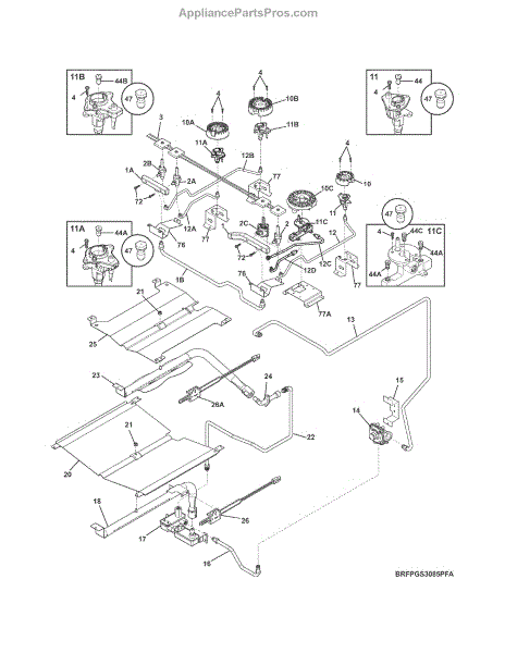 Parts for Kenmore 790.32613313 (79032613313, 790 32613313): Burner Parts