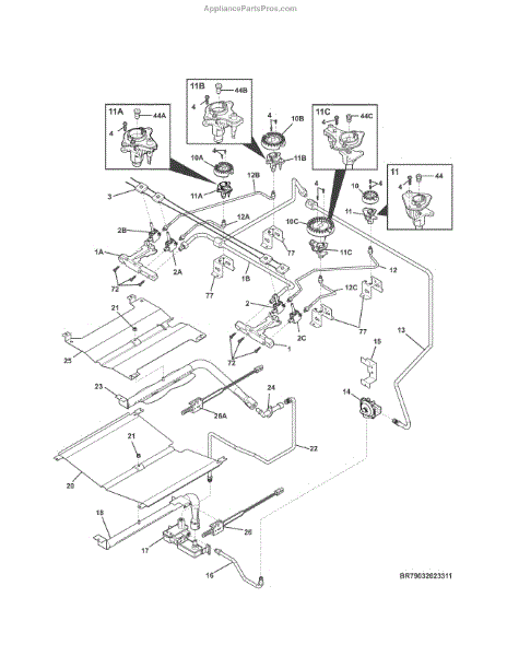 Parts for Kenmore 790.32623315 (79032623315, 790 32623315): Burner Parts