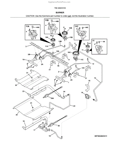 Parts for Kenmore 790.32623318 (79032623318, 790 32623318): Burner Parts