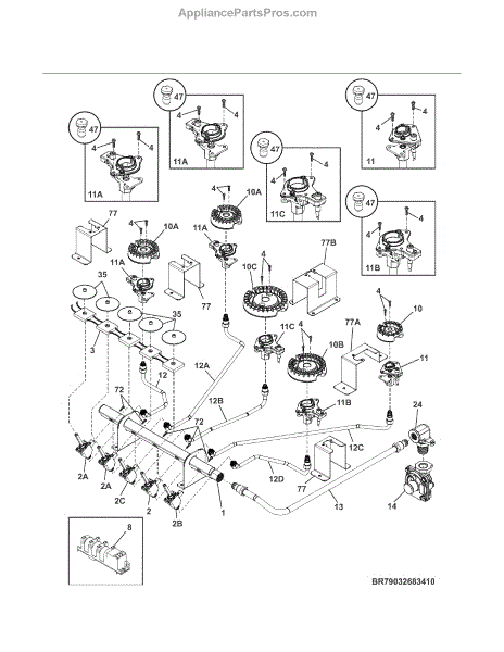 The Regulator is an OEM part for Frigidaire cooktops. It is responsible for regulating the flow and pressure of gas entering the appliance, ensuring safe and efficient operation.