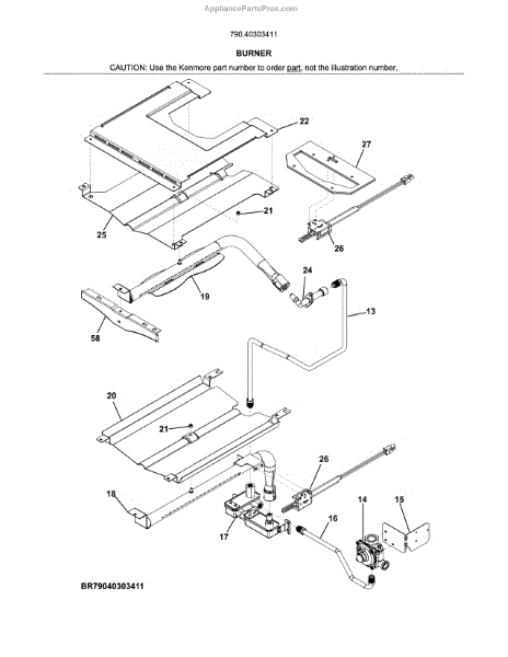 Parts for Kenmore 790.40303411 (79040303411, 790 40303411): Burner Parts