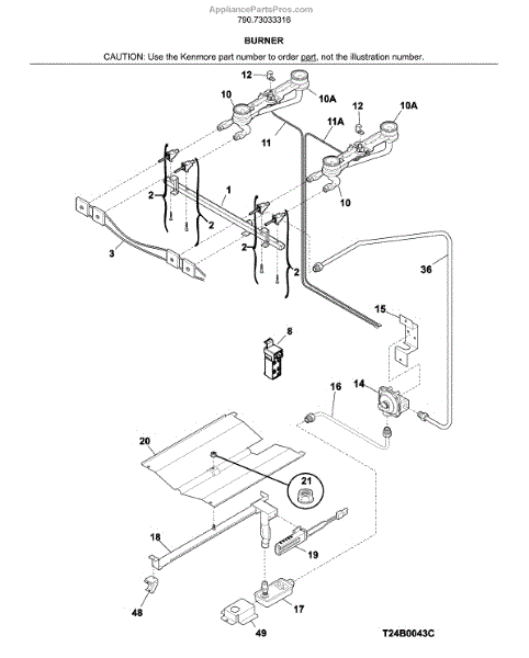 Parts for Kenmore 790.73033316 (79073033316, 790 73033316): Burner Parts