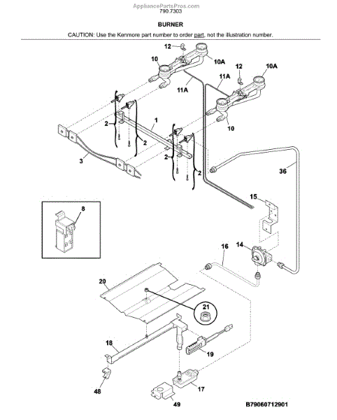 Parts for Kenmore 790.73039316 (79073039316, 790 73039316): Burner Parts