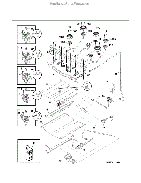 The Igniter Orifice Assembly is an OEM component for Frigidaire gas ranges. It is an integrated assembly housing both the electric ignition wire and adjustable gas orifice or restrictor needed for controlled gas flow. Symptoms of a bad ignitor orifice assembly include: