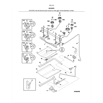 This surface burner ignitor/orifice assembly directs gas through a calibrated orifice and provides the spark to ignite it. Replacing a worn or damaged assembly restores consistent lighting and an even flame on the affected rangetop burner.