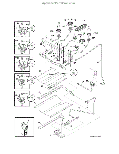 The Igniter Orifice Assembly is an OEM component for Frigidaire gas ranges. It is an integrated assembly housing both the electric ignition wire and adjustable gas orifice or restrictor needed for controlled gas flow. Symptoms of a bad ignitor orifice assembly include: