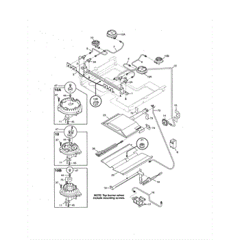 This burner mounting screw fastens the surface burner assembly to its base on the cooktop, keeping it stable and properly aligned. Replace stripped, rusted, or missing screws to eliminate wobble and maintain even flame positioning.